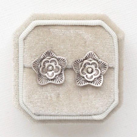 Bronze Mini Cactus Flower Pyrite Hoop Earrings