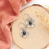 Rustic yet perfectly feminine. Striking black tourmaline dangle inside hand stamped silver cupped elements. Unique and inviting. Handmade Shepherd hook earwires. Measure 1 1/4”. Sterling silver, which has been oxidized and hand polished for an antique finish.