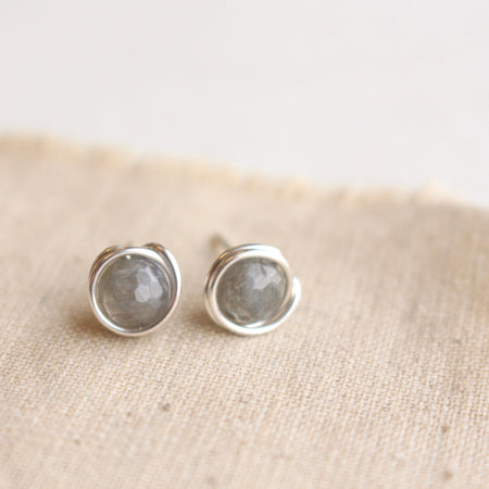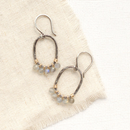 Labradorite Wrapped Mixed Metal Oval Earrings