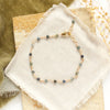 Earthy and inviting. Dreamy, dainty sapphires are wrapped with gold. An everyday luxury. Finished with a lobster clasp and adjustable length chain closure. Measures 7 1/4-8". 14k gold fill.